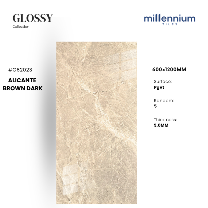 Với sắc nâu marble sang trọng và bề mặt bóng kính, ALICANTE BROWN DARK G62023 lý tưởng cho: