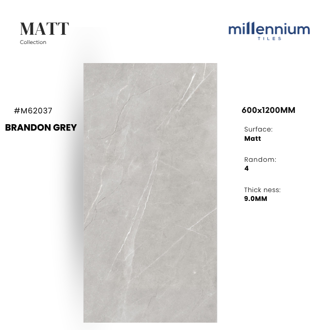 BRANDON GREY – M62037 không chỉ là gạch lát/ốp, mà còn là giải pháp hoàn thiện không gian hiện đại & bền vững. Với gam xám stone khỏe khoắn, vân đá tự nhiên tinh tế, bề mặt Matt chống trơn và độ bền vượt trội, sản phẩm mang đến sự cân bằng giữa thẩm mỹ – công năng – an toàn, lý tưởng cho công trình dân dụng và thương mại cao cấp.