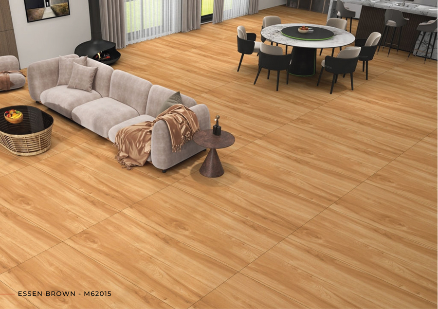 Với gam nâu marble sang trọng và bề mặt Matt chống trơn, ESSEN BROWN M62015 lý tưởng cho:
