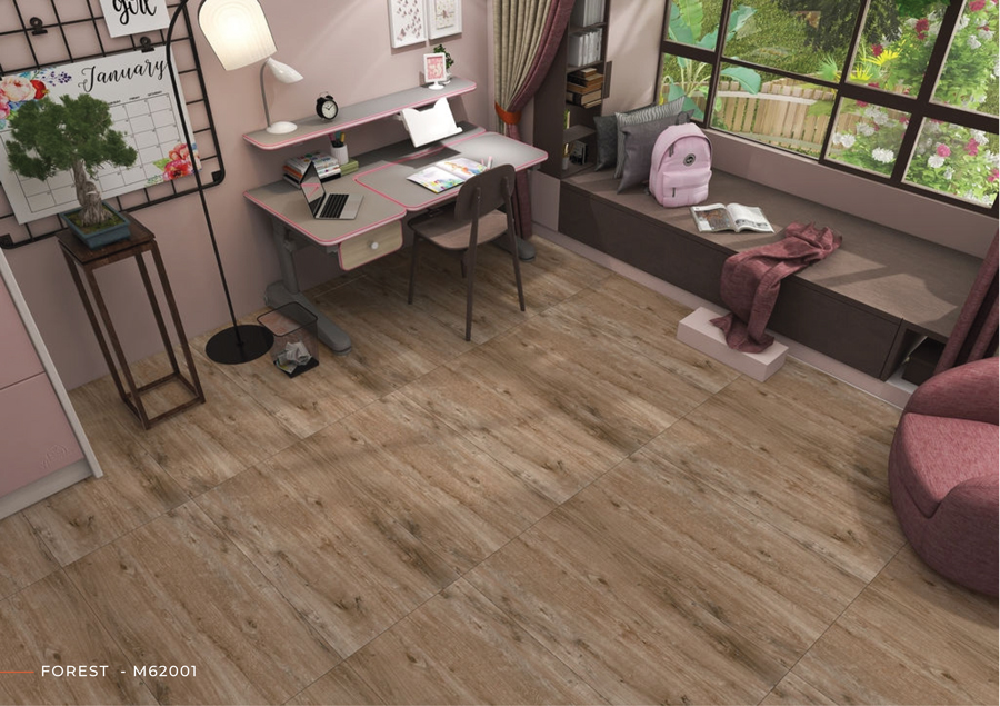 Nhờ thiết kế giả gỗ tự nhiên và bề mặt Matt chống trơn, FOREST WOOD M62001 phù hợp cho: