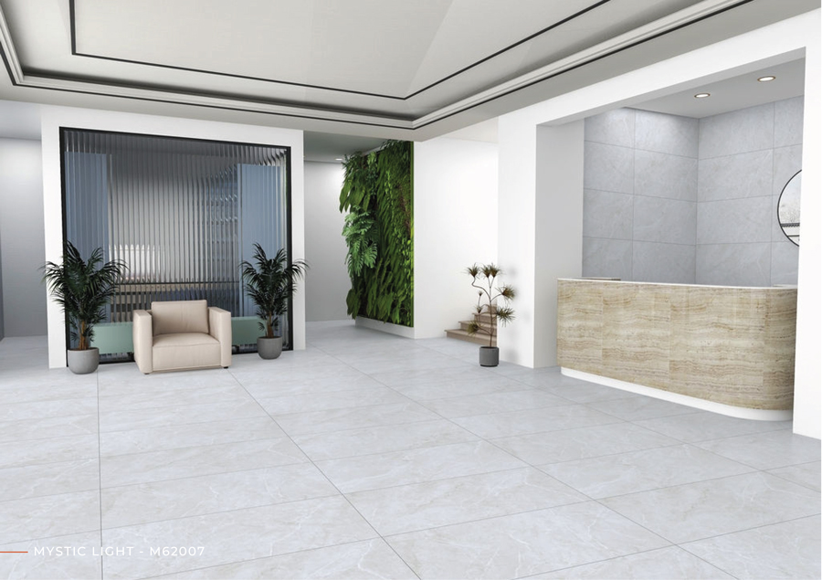 MYSTIC LIGHT – M62007 không chỉ là gạch lát/ốp, mà còn là giải pháp hoàn thiện không gian hiện đại & thanh lịch. Với gam sáng tinh tế, vân đá marble nhẹ nhàng, bề mặt Matt chống trơn và độ bền vượt trội, sản phẩm mang lại sự kết hợp hoàn hảo giữa thẩm mỹ – công năng – an toàn, lý tưởng cho công trình dân dụng và thương mại cao cấp.
