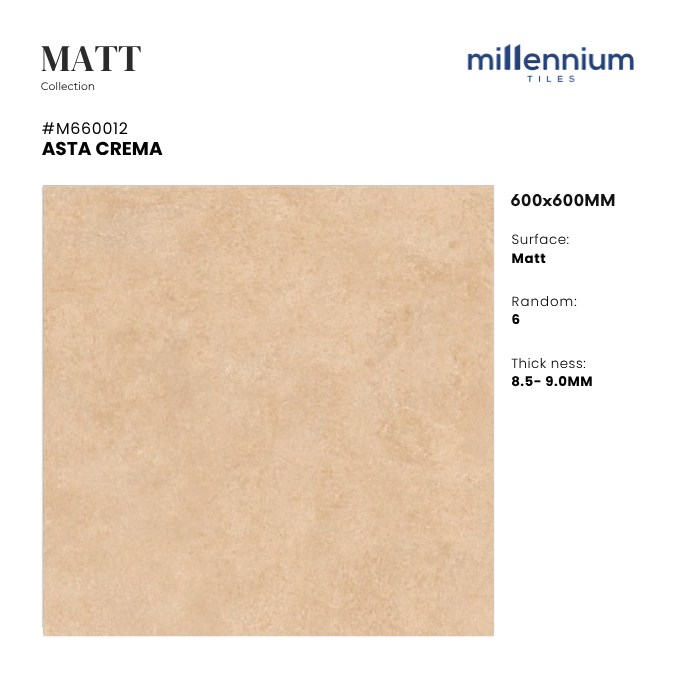 ASTA CREMA – M66012 không chỉ là vật liệu lát sàn, mà còn là giải pháp hoàn thiện không gian hiện đại & an toàn. Với gam crema sáng ngà tinh tế, vân đá marble nhẹ nhàng, bề mặt Matt chống trơn và độ bền cao, sản phẩm mang lại sự cân bằng giữa thẩm mỹ – công năng – an toàn, lý tưởng cho công trình dân dụng và thương mại.