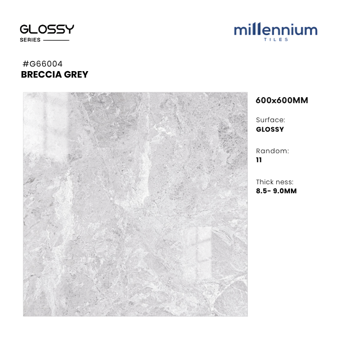 BRECCIA GREY – G66004 là mẫu gạch PGVT bóng kính cao cấp, kích thước 600x600mm, mang gam xám marble sang trọng với vân đá Breccia tự nhiên tinh tế. Bề mặt bóng kính giúp không gian trở nên sáng thoáng – hiện đại – thanh lịch, phù hợp cho nhiều loại công trình cao cấp.
