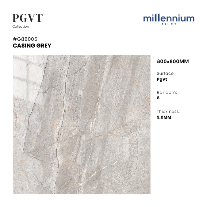 CASING GREY – G88006 không chỉ là vật liệu lát sàn, mà còn là giải pháp thẩm mỹ giúp khẳng định đẳng cấp không gian. Với thiết kế vân đá marble trung tính, bề mặt PGVT bóng kính và độ bền vượt trội, sản phẩm mang lại sự cân bằng giữa thẩm mỹ – công năng – độ bền, là lựa chọn hoàn hảo cho cả công trình dân dụng và thương mại cao cấp.