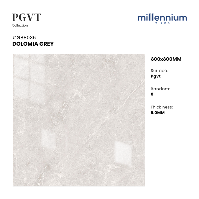DOLOMIA GREY – G88036 không chỉ là vật liệu lát sàn, mà còn là giải pháp thẩm mỹ nâng tầm công trình. Với màu xám Dolomia thanh lịch, vân đá marble dứt khoát, bề mặt PGVT bóng kính và độ bền vượt trội, sản phẩm mang lại sự cân bằng hoàn hảo giữa thẩm mỹ – công năng – độ bền, xứng đáng là lựa chọn hàng đầu cho những không gian hiện đại và sang trọng.