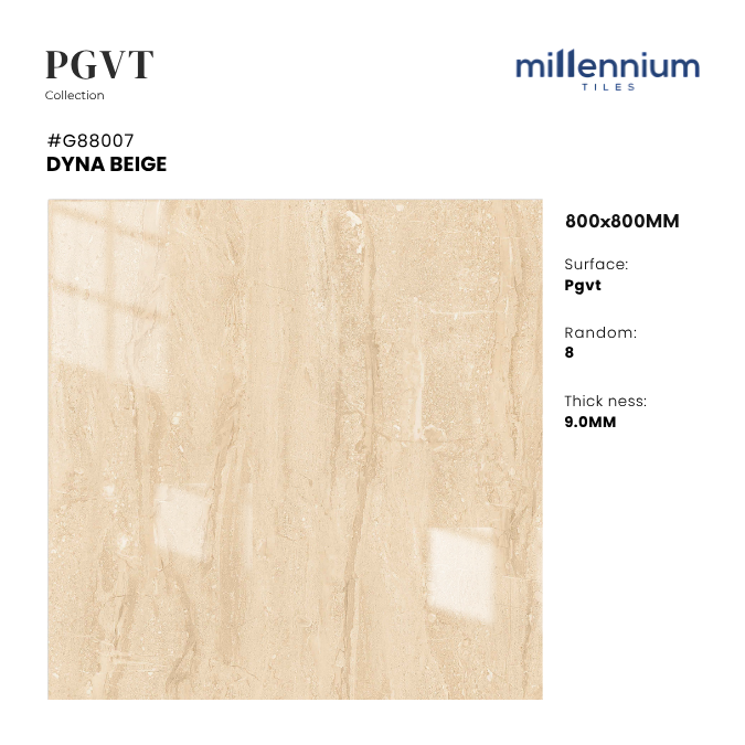 DYNA BEIGE – G88007 không chỉ là vật liệu lát sàn, mà còn là giải pháp hoàn thiện không gian sống và làm việc đẳng cấp. Với gam màu be marble sang trọng, vân đá tự nhiên mềm mại, bề mặt PGVT bóng kính và độ bền vượt trội, sản phẩm mang lại sự kết hợp hoàn hảo giữa thẩm mỹ – công năng – độ bền, khẳng định gu thẩm mỹ tinh tế của gia chủ và giá trị lâu dài cho công trình