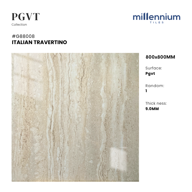ITALIAN TRAVERTINO – G88008 không chỉ là gạch lát sàn, mà còn là giải pháp kiến tạo không gian sống và làm việc mang đậm dấu ấn Ý. Với màu be travertine thanh lịch, vân đá tự nhiên tinh xảo, bề mặt PGVT bóng kính sang trọng và độ bền vượt trội, sản phẩm mang lại sự cân bằng hoàn hảo giữa thẩm mỹ – công năng – độ bền, khẳng định phong cách sống sang trọng & tinh tế.