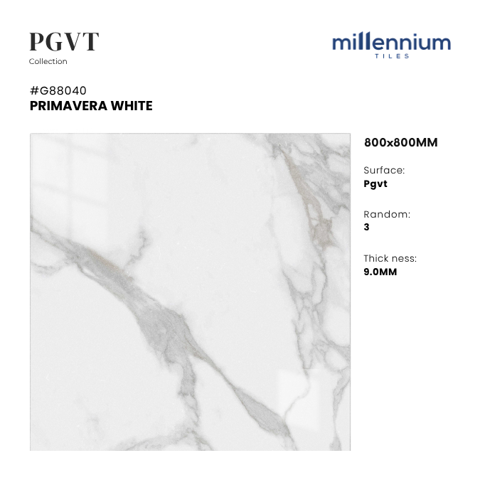PRIMAVERA WHITE – G88040 không chỉ là vật liệu lát sàn, mà còn là giải pháp kiến tạo không gian hiện đại & cao cấp. Với gam trắng marble tinh tế, bề mặt PGVT bóng kính sang trọng và độ bền vượt trội, sản phẩm mang lại sự cân bằng hoàn hảo giữa thẩm mỹ công năng độ bền, là lựa chọn lý tưởng cho những công trình sang trọng và tinh tế.