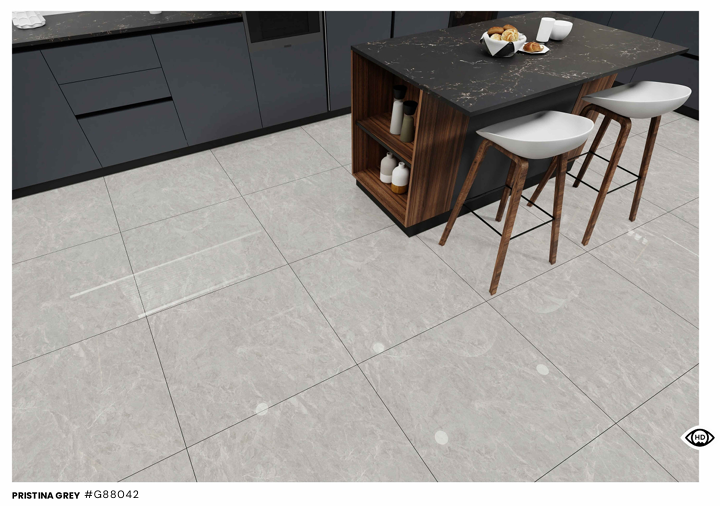 Với gam xám marble thanh lịch và bề mặt bóng kính phản chiếu ánh sáng, PRISTINA GREY phù hợp cho: