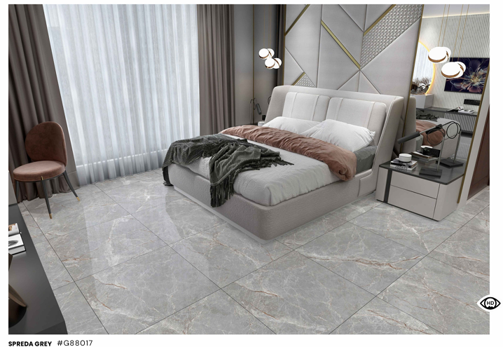 Với gam xám marble thanh lịch và hiệu ứng bóng kính phản chiếu ánh sáng, SPREDA GREY phù hợp cho nhiều loại công trình: