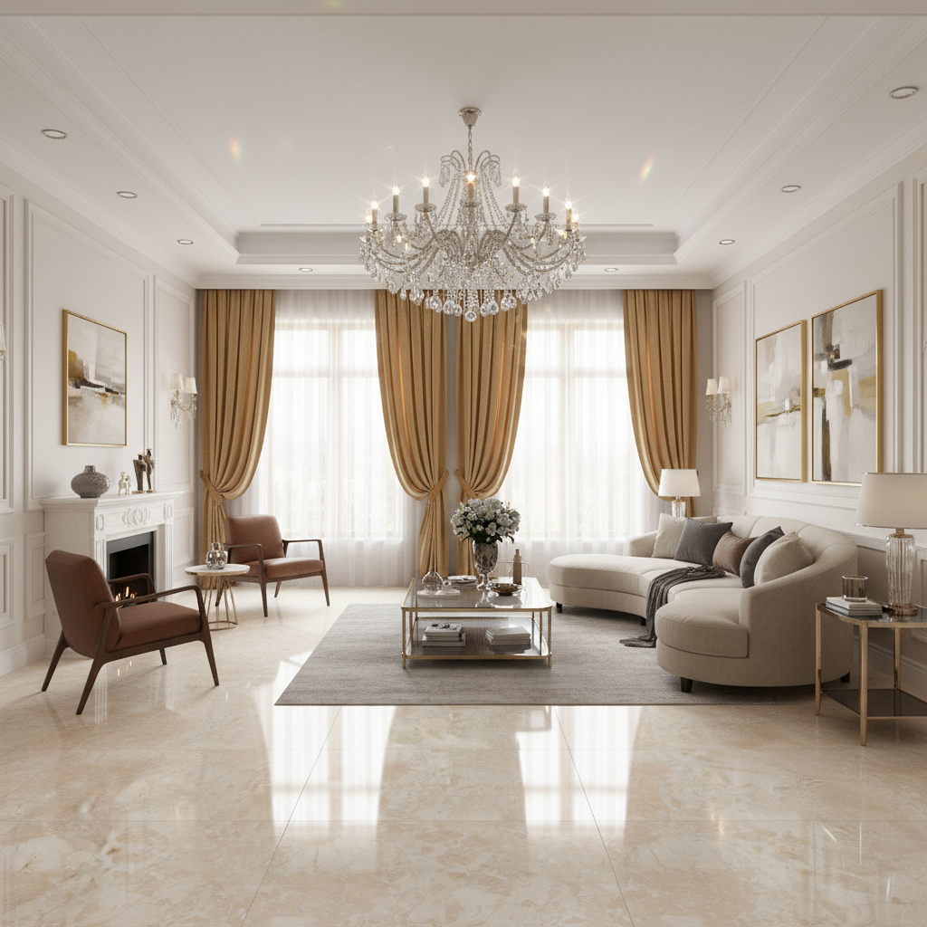 Với gam màu be–xám thời thượng và bề mặt phản chiếu ánh sáng tinh tế, BRECCIA ROYAL phù hợp với nhiều không gian:
